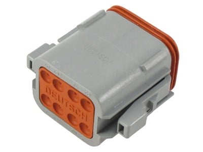Deutsch Dt Serisi IP68 koruma sınıfına sahip 8 pinli dişi kablo tipi konnektör. Kontakları üzerinden 13 ampere kadar akım taşıyabilirler. Bu ürünün karşılığı olan ürün ise DT04-8P kablo tipi erkek konnektördür. Teslimat kapsamına bir adet W8S kitleme parçası ve sekiz adet 0462-201-16141 kodlu dişi pin dahildir. Ayrıca bu ürünün pinleri crimp (pense ile sıkmalı) ve solid (lehim tipi) olmak üzere ikiye ayrılır. Lütfen sipariş detayınızda veya sipariş notunuzda istediğiniz kontak tipi belirtiniz.
